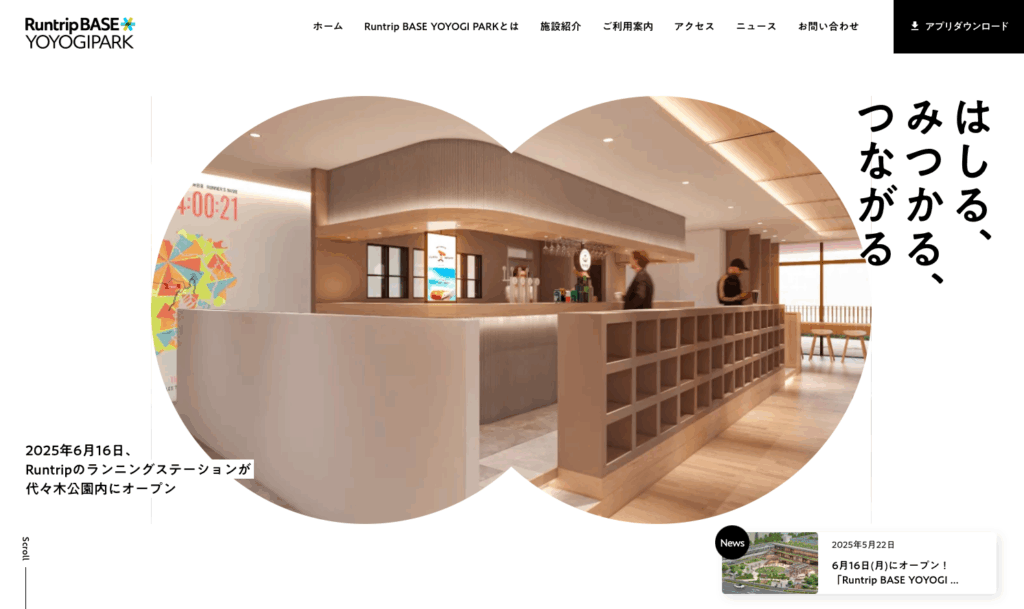 - Runtrip BASE YOYOGI PARKご来店前に Runtripアプリ をダウンロード・会員登録してください。
